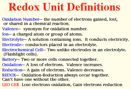 REDOX is Reduction-Oxidation. They occur simultaneously. Burning is REDOX. Video: