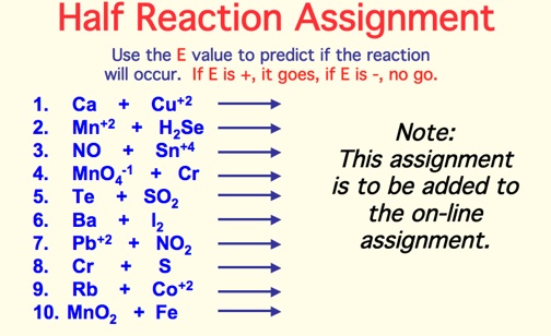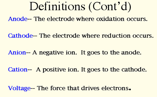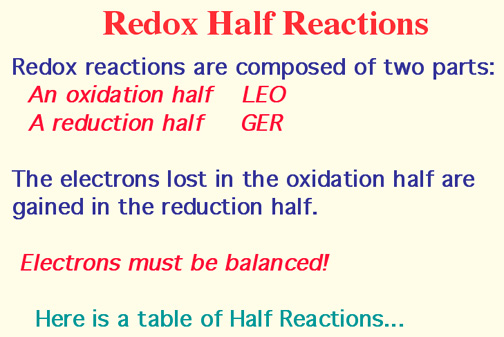 Half-Reactions Demos: Big Galvanometer, metals in electrolytes.