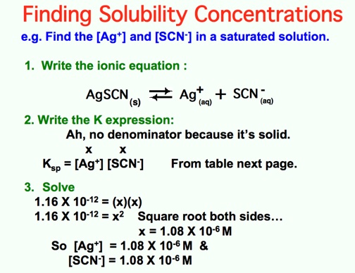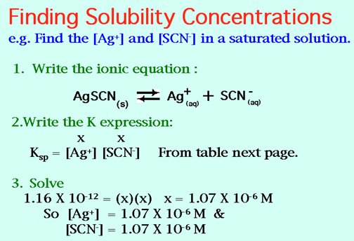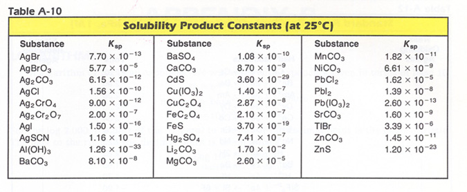 Hints: Sample Solubility Product problem, and The Solubility Product Table: