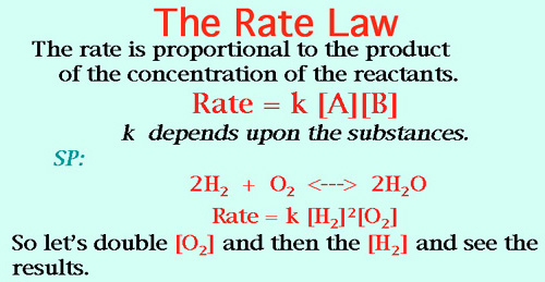 Ah, well let's double the O2, (2)1 = double rate. Now we'll double the H2, (2)2 = four times the rate. So (double) time (four times) gives us eight times the rate for the reaction! WOW!