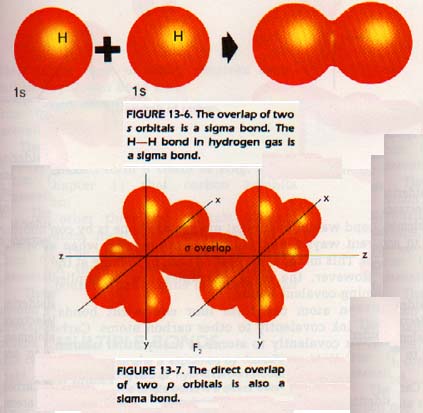 9. If two s orbitals or s and p orbitals overlap, a sigma bond, σ, is formed. If two p orbitals overlap end-to-end, a pi, π, bond is formed.