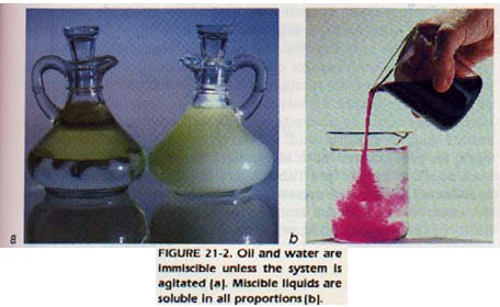 Four simple solution situations can be considered. They are listed in Table 21-1. Not all possible combinations of substances will fit into these four rigid categories. However, we will now consider these four as sample cases for studying solutions.