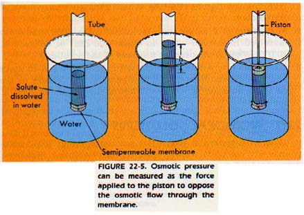 There is another colligative property which is of great importance in living systems. Consider Figure 22-5. Two liquids are separated by a thin film called a membrane. One liquid is a pure solvent and the other liquid is a solution (with the same solvent). The membrane separating the liquids is a special kind of membrane called a semipermeable membrane.