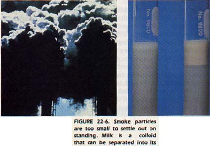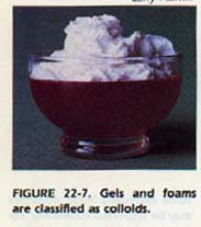 Colloid particles are larger than the single atoms, ions, or molecules of solutions. They are smaller than the particles of suspensions, which can be seen through a microscope and which settle out of suspension on standing. Colloids include materials labeled as emulsions, aerosols, foams, and gels.