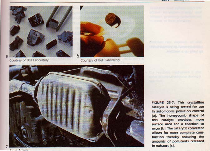 This attraction weakens the 0-0 bond to the point where the other reactant can break the 0-0 bond. The reaction then proceeds. Catalytic converters on automobile exhaust systems employ a contact catalyst.