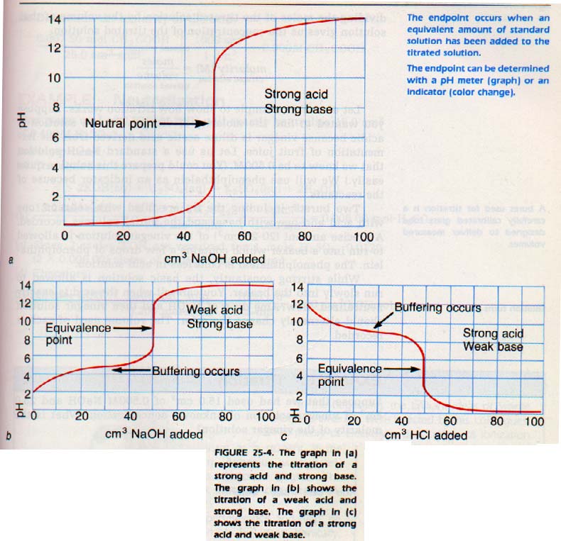 The graph shown in Figure 25-4 is for the titration af a strong acid by a strong base. Weak electrolytes show a slightly different shape, shifted toward the pH of the stronger reactant.