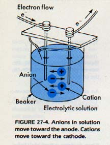 If we immerse the electrode in an ionic solution, positive ions in the solution will be attracted to the cathode. For this reason, positive ions are called cations, Negative ions will be attracted toward the anode. Consequently, they are called anions.