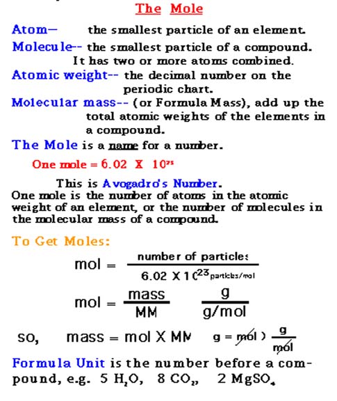 Chemical symbols and formulas (such as H and H20) are shorthand signs for chemical elements and compounds. The symbol of an element may represent one atom of the element. The formula of a compound may represent one molecule or one formula unit of the compound. Symbols and formulas may also represent a group of atoms or formula units. Since atoms are so very small, chemists deal with large groups of atoms. This chapter is about a group called a mole, containing a specific number of units.