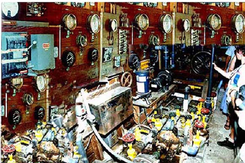 The Bridge and Engine Order Telegraph to the great steam engines below.