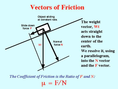 The Coefficient of Friction is the ratio of the force of friction to the normal force. Normal is at right angles.