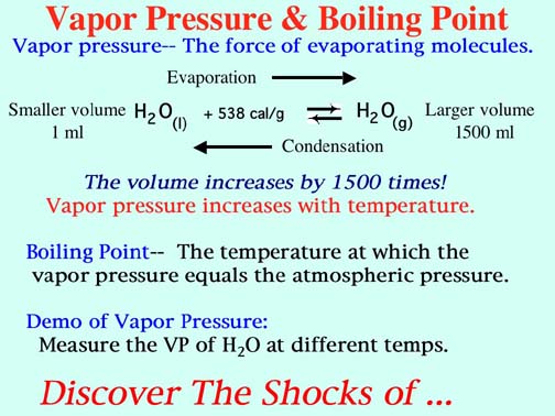 We can have a superheated liquid at room temperature (20oC) like the CO2 in a fire extinguisher. Liquid CO2 at 20oC has a vapor pressure of 100 atmospheres (100 kg/cm2! To contain that we need a strong steel container. If the valve is broken off, the awesome flashing of liquid to gas makes the cylinder into a rocket that can penetrate a wall! Video: