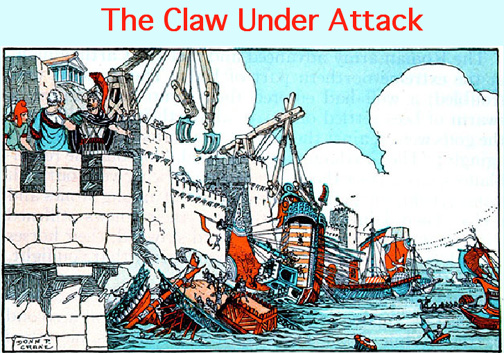 Testing Archimedes' Claw to dump Roman Ships (video).