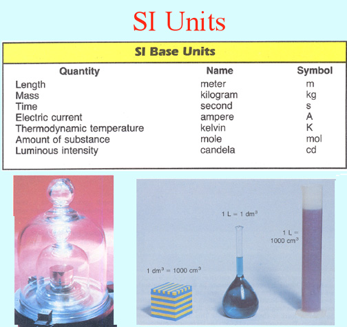 The International Kilogram Mass The Liter is a cubic decimeter.