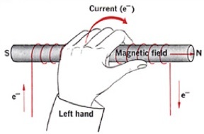 of the electron flow and the thumb will point to the N pole.