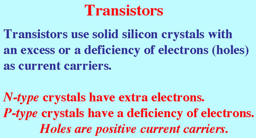 In the 1970’s, we have Solid State Electronics, the transistor and computer chips. It’s now possible to have two current carriers-- Electrons (negative) and Holes (positive carriers).