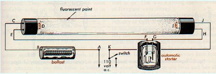 ..... Fluorescent lights: Ultraviolet light emitted by high voltage causes the phosphorescent coating on the tube to emit visible light.