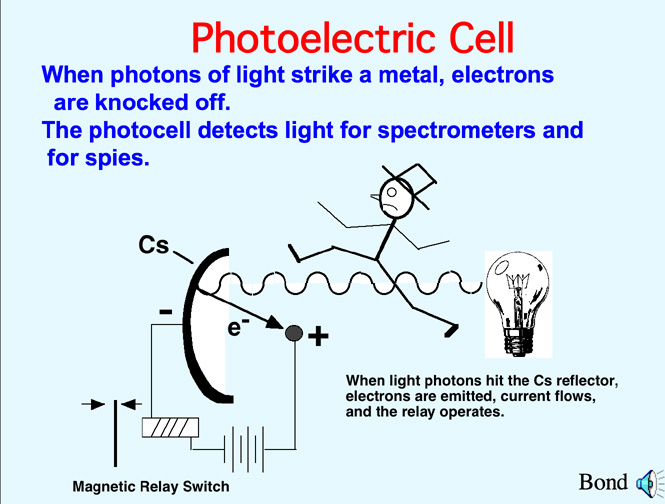 .......... The photoelectric effect, (light kicks electrons out of atoms)