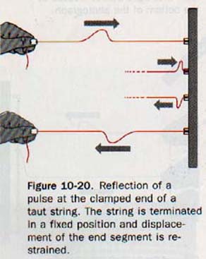 10.16 Standing Waves As seen in Section 10.10, a transverse pulse traveling on a taut string is inverted when reflected at the clamped end. This inversion upon reflection at a clamped end occurs also with a train of transverse waves.