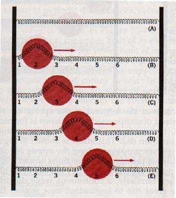 Figure 10-6. (Bottom) A rarefaction pulse traveling along an elastic medium.