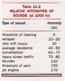 The sensory response to sounds is nonlinear. Minimum intensity levels for hearing various sound frequencies define the threshold of hearing. Upper intensities that produce pain rather than increased loudness define a threshold of pain.