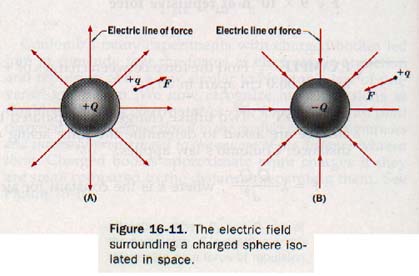 Let us consider a positively charged sphere +Q of Figure 16-11(A) isolated in spare. A small positive charge +Q, which we shall call a test charge, is brought near the surface of the sphere.