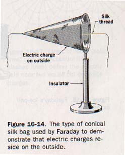 16.11 Distribution of Charges Michael Faraday performed several experiments to demonstrate the distribution of charge on an isolated object. He charged a conical silk bag like that shown in Figure 16-14 and found that the charge was on the outside of the bag.