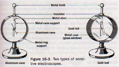 16.4 The Electroscope Two common types of electroscopes that are more sensitive than the simple pith ball device are shown in Figure 16-3.
