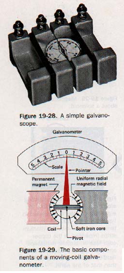 A more versatile instrument for detecting feeble currents is the galvanometer, the essential parts of which are in Figure 19-29.