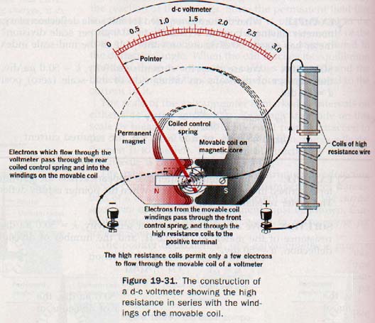 29.13 The d-c Voltmeter The potential difference across a galvanometer is quite small even when the needle is fully deflected. If a galvanometer is to be used to measure voltages of ordinary magnitudes, we must convert it to a high-resistance instrument. The essential parts of a d-c voltmeter are shown in Figure 19-31.