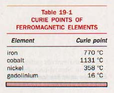 When the temperature of a ferromagnetic material is raised above a certain critical value, the domain regions disappear and the material becomes paramagnetic. This temperature is known as the Curie point. It is usually lower than the melting point of the substance. The Curie points for some ferromagnetic substances are given in Table 19-1.
