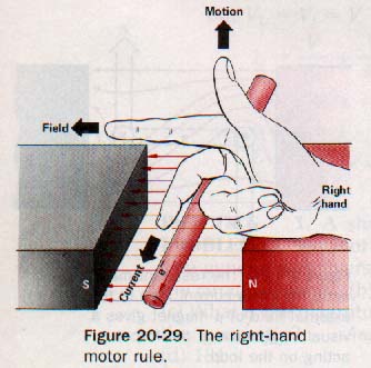 The direction of motion of the armature turns is determined by the use of the right-hand motor rule. An electric motor produces a back emf that subtracts from the applied voltage.