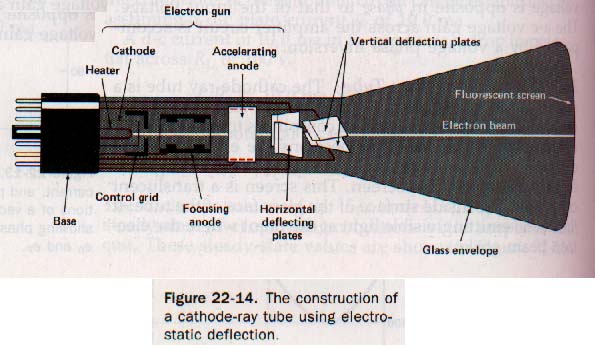 The Cathode Ray Tube uses charges to deflect the beam of electrons onto a fluorescent screen.