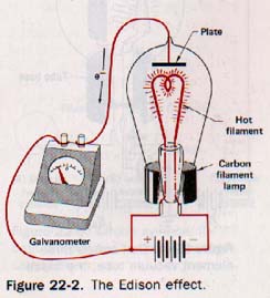 Vacuum Tubes: The Edison Effect is the boiling off of electrons from a heated filament. This is Thermionic Emission.
