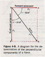 As we saw in Section 2.11, two vectors that have the same effect as a single vector are called the components of the original vector. This procedure of finding component forces is called resolution of forces. See Fig 4-9.