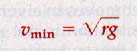 Where vmin is the critical velocity in meters/sec, r is the radius in meters, and g is the acceleration of gravity in m/s2 (9.8m/s2).