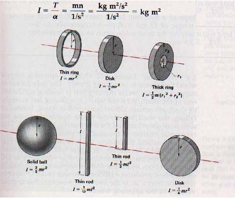 Rotational inertia takes into account both the shape and the mass of the rotating object. Equations for the rotational inertia of certain regularly shaped bodies are given in Figure 5-11. Rotational inertia has the unit dimensions kg.m2.