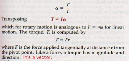 5.8 Rotational Inertia A wheel mounted on a shaft will not start to spin unless a torque is applied to the wheel. A wheel that is spinning will continue to spin at constant angular velocity unless a torque acts on it. In both cases the wheel is in equilibrium. Thus if we replace "force" with "torque," Newton's law of inertia also applies to rotary motion.